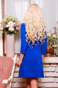 Платье молодежное,женское прямого силуэта,длинна мини.Рукав длиной 3/4.Спинка со средним швом на молнии.Полочка с подрезами на груди переходящими в остроугольную горловину,образующую V- образный вырез на декольте,украшенный фурнитуурой.Низ платья украшен перфорацией.Длинна изделия 80 см.Рост модели 170 см.