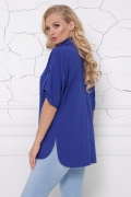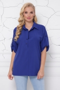 Блуза ботальная свободного силуэта с рукавом 3/4,"полулетучка"На рукаве хлястик на пуговице.Воротник рубашечный.,низ блузы с разным уровнем.По бокам разрезы с закруглениями.Длина р.48 и 50-96,5 см,р.52 и 54-97 см,р.56 и 58-97,5 см