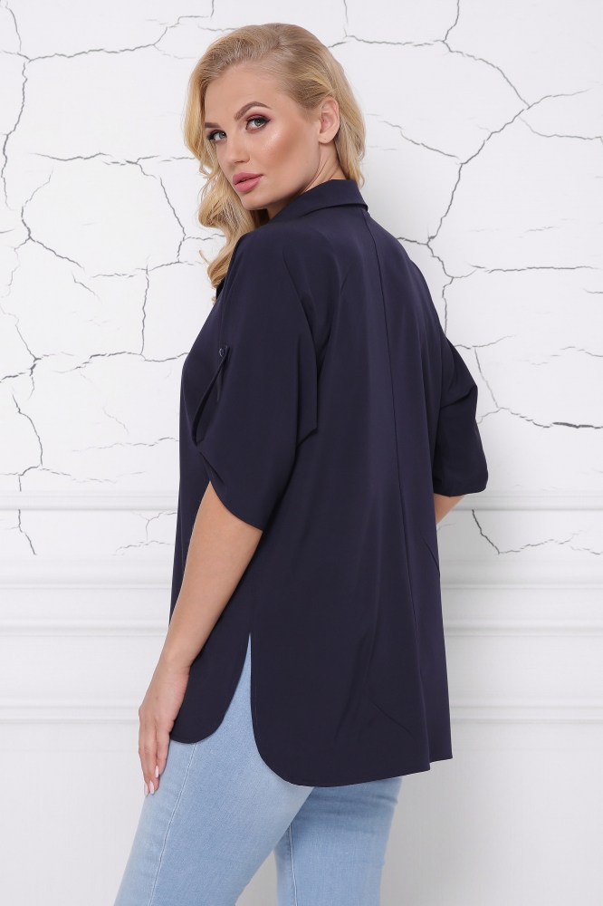Блуза ботальная свободного силуэта с рукавом 3/4,"полулетучка"На рукаве хлястик на пуговице.Воротник рубашечный.,низ блузы с разным уровнем.По бокам разрезы с закруглениями.Длина р.48 и 50-96,5 см,р.52 и 54-97 см,р.56 и 58-97,5 см
