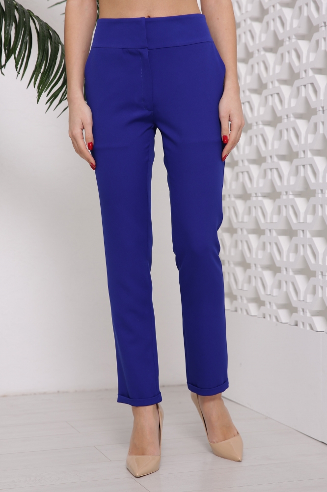 Брюки женские,молодежные.Прямые с боковыми карманами.На спинке карман обманка "листочка'.Пояс широкий,посадка высокая.По низу брюк манжет.Длина брюк по боковому шву в 42 размере-96 см,44 р.-96,5 см,46 р.-97 см,48 р.-97,5 см,50 р.-98 см.