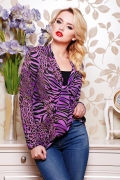 Кофта женская полуприлегающего силуэта.Рукав длинный.Горловина V-образная с воротничком-шалькой переходящей в сборку-узел.Низ изделия с небольшой сборкой на отрезном двойном поясе.В области лифа вшита вставка в виде топа,контрастного цвета.Длинна изделия 60 см