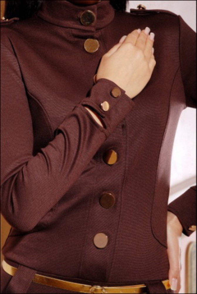 Комбинезон “Грация” женский брючный прилегающего силуэта. Рукав длинный с необычными манжетами декорированные металлическими пуговицами под золото.