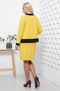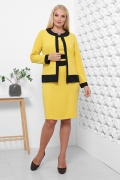 Жакет -полуприталенный .из основной ткани .Отделка по горловине,краям бортов,низу рукавов и полочек из отделочной ткани .Застегивается на брошку. .