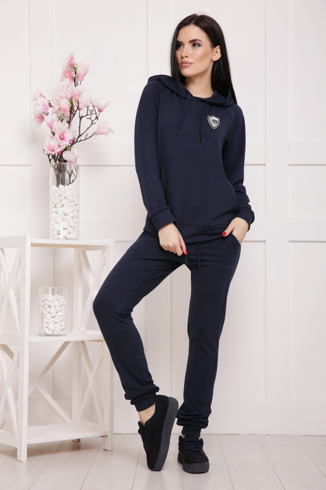 Костюм спортивный,молодежный,брючный.Кофта с капюшоном и рукавом реглан,рукав под манжет.На полочке кофты карман "кенгуру"круглой формы по низу.Кофта под манжет,брюки прямые с прямым карманом и манжетом по низу.Длина брюк в 42 р.-104 см,44 р.-104.5 см,46 р.-105 см,48 р.-105.5 см,50 р.-106 см.Длина кофты в 42 р.-68 см,44 р.-68.5 см,46 р.-69 см,48 р.-69.5 см,50 р.-70 см.