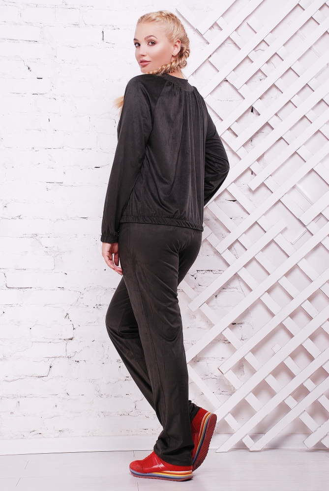 Костюм спортивный,ботальный,брючный.Брюки прямые.Кофта с круглым вырезом по горловине и сборкой по полочке,спинке и рукавам.Рукав реглан.Низ кофты и рукавов под резинку.