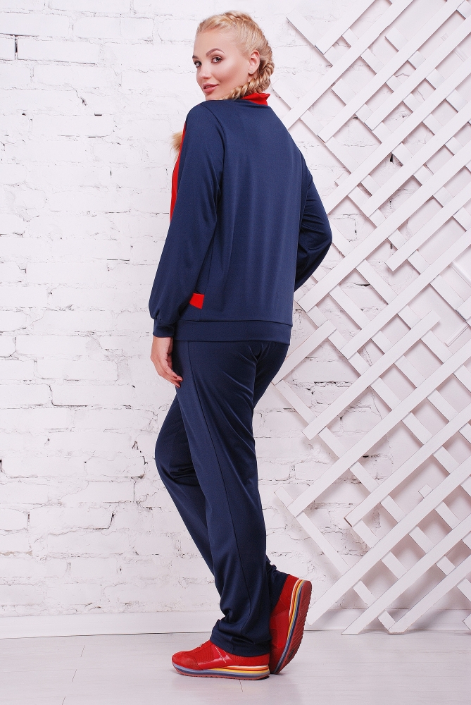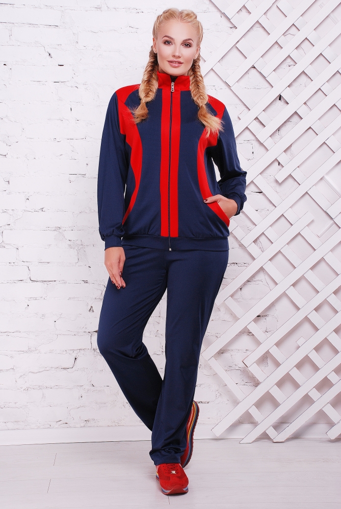Костюм спортивный, ботальный, брючный.Кофта с втачным рукавом.Низ кофты под манжет и воротником стойкой.Кофта на молнии с фигурными линиями по полочке в которых размещен карман.