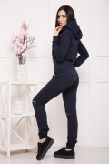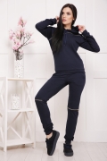 Костюм спортивный молодежный с капюшоном.Кофта с втачным рукавом.Рукав и низ на манжете.На полочке фигурная кокетка в которую вшита рабочая молния цвета "золота",брюки с карманами,на коленях вставлены молнии.Низ брюк под манжет.Длина кофты р.42-77 см,р.44-77.5 с,р.46-78 см,р.48-78.5 см,р.50-79 см.Длина брюк р.42-112 см,р.44-112.5 см,р.46-13 см,р.48-113.5 см,р.50-114 см.