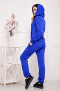 Костюм молодежный,спортивный из двухнитки.Кофта с втачным рукавом и манжетами,низ кофты с манжетой.Кофта с капюшоном и V-образной горловиной.На полочке карманы листочки из отделочной ткани.Брюки на манжете с карманами из отделочной ткани.Пояс под резинку.Длина брюк 42-44 р.-108 см,46-48 р.-109 см,50-52 р.-110 см.Длина кофты 42-44 р.-66.5 см,46-48 р.-67 см,50-52 р.-68 см.