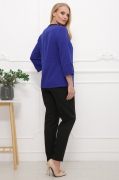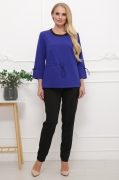 Костюм женский ботальный.Блуза прилегающго силуэта отрезная по линии талии.По переду по линии талии кулиса с фиксатором.Верхняя часть переда с нагрудными вытачками и рельефными швами.Верхняя часть спинки со средним швом в который вставлена потайная молния.Нижняя часть спинки с талевыми вытачкам.Рукав одношовный..Брюки на притачном поясе с застежкой на молнию и потайные крючки.
