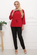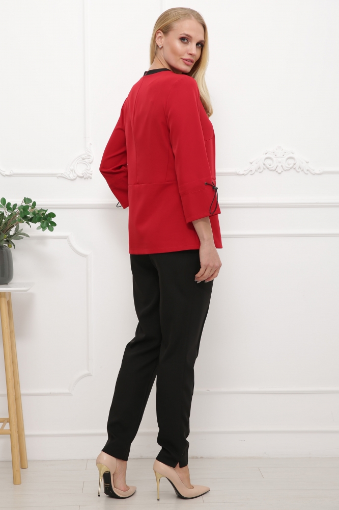 Костюм женский ботальный.Блуза прилегающго силуэта отрезная по линии талии.По переду по линии талии кулиса с фиксатором.Верхняя часть переда с нагрудными вытачками и рельефными швами.Верхняя часть спинки со средним швом в который вставлена потайная молния.Нижняя часть спинки с талевыми вытачкам.Рукав одношовный..Брюки на притачном поясе с застежкой на молнию и потайные крючки.