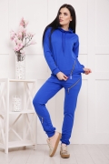 Костюм спортивный молодежный с капюшоном,со спущеным плечом.Декором кофты служит вшитая молния цвета"золота",брюки свободные на поясе,с карманами и манжете по низу.На левой и правой брючине вшиты декоративные молнии.Длина кофты 42 р.-57 см,44р.- 57.5 см,46 р.-58 см,48 р.58.5 см,50 р-59 см.Длина брюк 42 р.-112 см,44 р.-112.5 см,46 р.-113 см,48 р.-113.5 см,50 р.-114 см.
