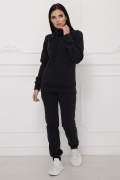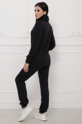 Костюм спортивный молодежный.Кофта приталенного силуэт с ассиметричными линиями на полочке и вертикальными рельефами в которых расположены карманы.На рукаве заложены две склады.Воротник "хомут"с драпировкой.Длина кофты в 42 и 44 р.-68 см,в 46 р.-69 см,в 48 и 50 р.-70 см.