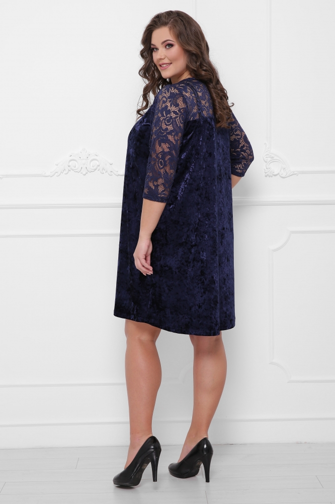 Платье женское,нарядное,из трикотажного велюра.Платье свободного силуэта с горловиной круглой формы с втачными рукавами из гипюра