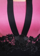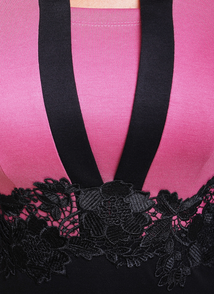 Платье женское,ботальное,полуприлегающего силуэта,зауженое к низу.Рукав длиной 3/4.Спинка со средним швом и застежкой на потайную молнию.Платье отрезное по линии талии из контрастных тканей.Полочка с округлым вырезом горловины,по линии талии украшена кружевом.Длина изделия 105 см.Наценка на размеры 60-62 +50 гр.