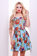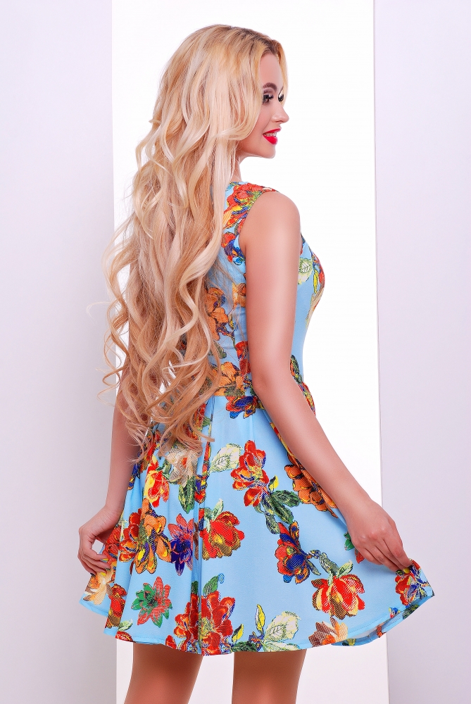 Платье молодежное,отрезное по талии.с юбкой полусолнцем и встречными складами.Платье без рукавов с квадратным вырезом украшенным фурнитурой цвета золота.По спинке потайная молния.Длина изделия от седьмого шейного позвонка 42 р-79 см,44 р-80.5 см,46 р-82 см,48 р-83 см,50 р-85 см