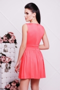 Платье молодежное,отрезное по талии и юбкой со сборкой.Платье без рукавов с широким поясом.Фурнитурой являются пуговицы цвета "золота".На юбке в боковых швах карманы.Центральная деталь без сборки.Длина в 42 размере 79 см,каждый следующий размер увеличивается на 2 см
