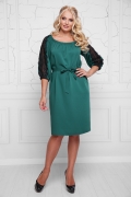 Платье ботальное прямого силуэта.Вырез по переду и спинке "крестьянка".Платье под пояс,рукав 3/4 с кружевом по центру рукава.Длина 48-50 р.-101 см,52-54 р.-102 см,56-58 р.-103 см.
