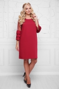 Платье женское,прямого свободного силуэта.Спинка со средним швом и потайной молнией.Вырез круглый по горловине.Рукав 3/4 из сетки с тремя рюшами из основной ткани.Длина 48-50 р.98.5 см,52-54 р.-99 см,56-58 р.-99.5 см
