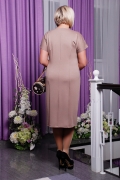 Платье женское, батальное, прямого силуэта с круглым вырезом по горловине. Рукав японка. На полочке платья вставки из отделочной ткани в виде кирпичиков. Платье задекорированно камушками в два ряда и металической фурнитурой под золото.