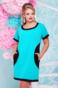 Платье ботальное,прямого силуэта.Рукав короткий,покроя "реглан" с притачной манжетой из контрастного цвета.Спинка со средним швом на застежку молнию.Горловина округлого выреза с притачной обтачкой из контрастного цвета.На полочке вшиты боковые детали с карманами с листочкой.По низу платья притачная обтачка цвета отделки.Длина изделия в 50 р.-86 см,52 р.-87 см,54 р.-88 см,56 р.-89 см,58 р.-90 см,60 р.-91 см.