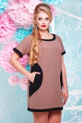 Платье ботальное,прямого силуэта.Рукав короткий,покроя "реглан" с притачной манжетой из контрастного цвета.Спинка со средним швом на застежку молнию.Горловина округлого выреза с притачной обтачкой из контрастного цвета.На полочке вшиты боковые детали с карманами с листочкой.По низу платья притачная обтачка цвета отделки.Длина изделия в 50 р.-86 см,52 р.-87 см,54 р.-88 см,56 р.-89 см,58 р.-90 см,60 р.-91 см
