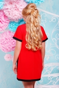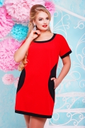 Платье ботальное,прямого силуэта.Рукав короткий,покроя "реглан" с притачной манжетой из контрастного цвета.Спинка со средним швом на застежку молнию.Горловина округлого выреза с притачной обтачкой из контрастного цвета.На полочке вшиты боковые детали с карманами с листочкой.По низу платья притачная обтачка цвета отделки.Длина изделия в 50 р.-86 см,52 р.-87 см,54 р.-88 см,56 р.-89 см,58 р.-90 см,60 р.-91 см.