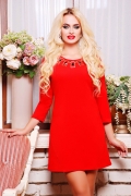 Платье молодежное трапецевидного силуэта,длинна мини.Рукав длинной 3/4.Спинка с рельефами и средним швом с молнией.Полочка с рельефами переходящие в боковые швы.Горловина "лодочка" украшенная "золотым колье"с камнями.Длинна изделия 78 см.Рост модели 170 см.