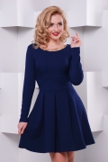 Платье молодежное полуприлегающего силуэта,с длинным втачным рукавом.Юбка клешеная с встречными складами.На полочке рельефы и отрезной широкий пояс.На спинке рельефы.Горловина круглая,обработана обтачкой.На горлвине пришита фурнитура цвета золота.Длина изделия в 42 р.-88 см.с каждым следующим размером длина увеличивается на 2 см.