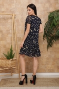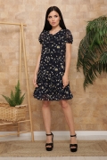 Платье молодежное свободного силуэта с коротким рукавом под резинку.Горловина обработана улиткой которая переходит в завязку.По низу платья две оборки.