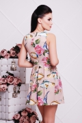 Платье молодежное отрезное по талии и юбкой со встречными складами.Платье без рукавов,с круглым вырезом по горловине.Лиф с горизонтальными рельефами входящими в горловину.Юбка по центру со встречной складой и последующими маленькими складами смотрящими к центру полочки.Спинка с центральным швом и потайной молнией.