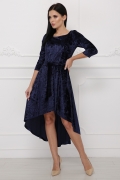 Платье молодежное,отрезное по талии и юбкой полусолнце.Рукав 3/4.По спинке шов и потайная молния