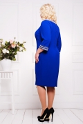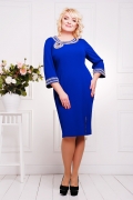 Платье женское, батальное цельнокроенное с талевыми вытачками на полочке и спинке. Горловина оформлена широкой обтачкой и вырезом сбоку в виде "капельки". Рукав длиной 3/4 с манжетой. Спинка с центральным швом с декоративной металлической молнией. На полочке разрез с металлической молнией, дающей свободу движениям при ходьбе. Манжеты и горловина украшены ручной вышивкой, камнями и жемчугом.