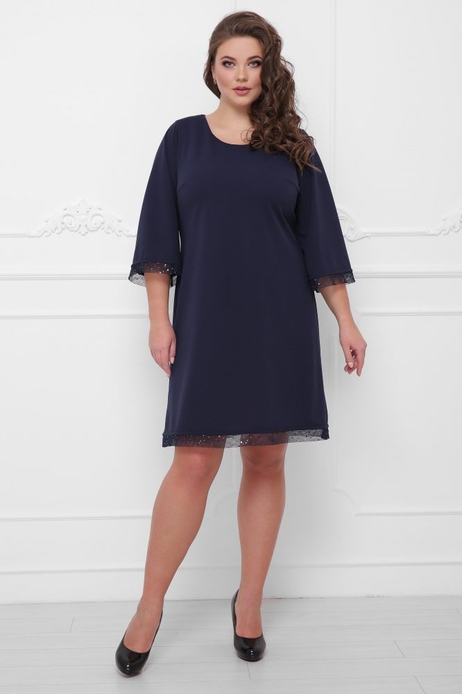 Платье ботальное,трапецевидного силуэта.Рукав длиной 3/4.Спинка со швом и выточками.горловина округлого выреза,обработанная по переду обтачкой.по спинке улиткой.По низу рукава и платья пришита изящная манжета из сетки-паетки.Длина в 50 р.-96 см,в 52 р.-97 см,в 54 р.-98 см,в 56 р.-99 см,в 58 р.-100 см,в 60 р.-101 см..