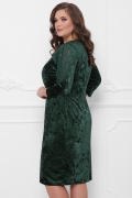 Платье женское,нарядное из трикотажного эластичного бархата без подкладки,без застежки.Платье свободного силуэта зауженое к низу.Рукав 3/4.По центру вставка из гипюра.Спинка со средним швом,кокетка из гипюра.Вырез горловины округлой формы.По полочке кокетка из гипюра.Длина платья по центру спинки в 50 р.-105 см, в 52 р.-107 см ,в 54 р.-109 см, в 56 р.-111 см, в 58 р.-113 см.Длина рукава в 50 р.-43 см ,в 52 р.-44см ,в 54 р.-45 см ,в 56 р.-46 см, в 58 р.-47 см.