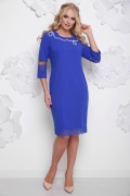 Платье ботальное прямое прилегающего силуэта с фигурными вертикальными рельефами,по спинке потайная молния.Горловина круглая и по полочке расшита жемчугом.Низ платья с кружевом.Рукав 3/4 со вставкой из сетки и кружева.Рост модели 175 см.Длина в 50 р.-108.5 см,каждый размер удлиняется на 0.5 см.Размеры 60 и 62 +50 гр.