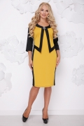 .Платье женское ботальное,полуприлегающего силуэта.Рукав длинный прямой.Полочка с отлетными планками имитирующими жакет.Горловина круглая оформленая обтачкой с закругленными концами по центру украшеная брошкой.Спинка с рельефами и средним швом.Длина изделия 110 см.Размеры 60 и 62 +50 гр.