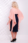 Платье женское,ботальное,прилегающего силуэта,зауженное к низу.Спинка со средним швом и застежкой на потайную молнию,рельефы приталивают и зауживают изделие к низу.Кокетка из креп-шифона под линией груди.По линии кокетки втачана отлетная пелерина,переходящая в рукава.Горловина круглая.Верхняя часть полочки из креп-шифона.По центру вставка из кружевного полотна набранного на креп-шифон.Пелерина переходит в рукава,удлиненные к линии низа изделия