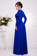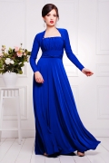 Комплект(платье+болеро)молодежный.Платье полуприлегающего силуэта,на регулируемых бретелях.Спинка собрана на резинку,лиф присборен,от юбки-солнце отделен широким втачным поясом,декоративно завязанным узлом.Длина изделия 150 см.Рост модели 170 см.