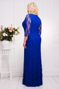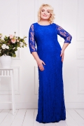 Платье женское ботальное прилегающего силуэта.Рукав длиной 3/4.Вырез горловины "лодочка" по полочке и спинке рельефные швы,в среднем шве спинки застежка-молния.Платье двухслойное-еипюр и микромасло,рукав- гипюр.Длина изделия 150 см.