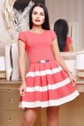 Платье"Дебора" коралл+белый