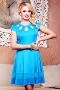 Платье молодежное,полуприлегающего силуэта.Рукав короткий,со складками по окату.Платье отрезное по линии талии с рельефами.Горловина округлого выреза обработанная улиткой-бейкой.Декоративным элементом платья являются вырезы по горловине в виде "капель".Юбка полусолнце,по низу вставка из сетки.Спина на застежку молния.Длина в 42 р.-90 см,в 44 р.-92 см,в 46 р.-94 см,в 48 р.-96 см,в 50р.-98 см.