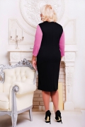 Платье женское батальное,полуприлегающего силуэта,зауженное к низу.Рукав длиной 3/4.Спинка с рельефными швами и средним швом с застежкой-молнией.Полочка с круглым вырезом горловины и рельефами переходящими в боковые швы.Горловину украшает фурнитура цвета "золота"с камнями.Длина изделия 105 см