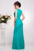 Платье молодежное,прилегающего силуэта.Платье без рукавов выполнено из двух тканей-двухслойное,ажурный гипюр и микромасло.Вырез горловины "лодочка".Юбка-годе,длиной в пол с рельефными швами и вставкой "клин"в среднем шве спинки.Спинка на застежку-молнию.Длина изделия 150 см.Рост модели 170 см.