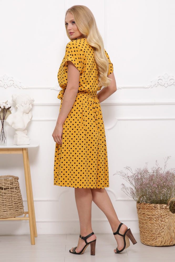 Платье ботальное свободного кроя,отрезное по талии,юбка со складами и под резинку.Рукав короткий под манжету.Лиф под планку,по горловине круглый вырез.В боковых швах карманы