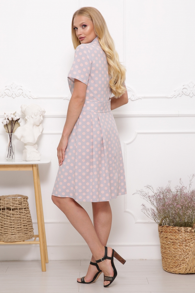 Платье ботальное свободного силуэта, рубашечного фасона отрезное по талии со складами ,воротник рубашечный.По груди кокетка,рукав короткий.Платье застегивается на пуговицы.Длина в р. 50-101 см,р.-52-102см,р.54-103 см.56 р.-104 см