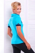 Рубашка молодежная прилегающего силуэта.Рукав короткий с манжетом из отделочной ткани с патиком застегнутым на пуговицу.Спинка с кокеткой и рельефами отстроченая отделочной строчкой.Воротник рубашечного типа,стойка из отделочной ткани.Полочка с кокеткой и рельефами,отстрочены отделочной строчкой.Длина изделия 42 р.-57 см,каждый следующий увеличивается на 1 см.