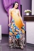 Сарафан молодежный,облегающего силуэта.Лиф задрапирован с помощью декоративного украшения.Завязки на спине.