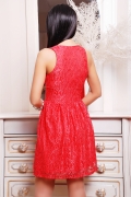 Платье молождежное полуприлегающего силуэта с отрезной юбкой по линии талии. Платье изготовлено из гипюра с широким отрезным поясом по линии талии. Платье без рукавов. Полочка с V-образным вырезом и небольшим запахом, под грудью заложена небольшая драпировка. На юбке по линии талии присутствует драпировка.