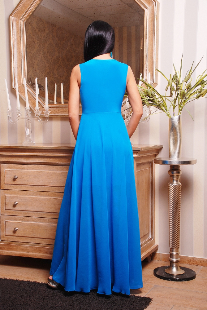 Сарафан молодежный ,мягкий струящийся силуэт свободный объем и драпировка по юбке полочки позволяет создать повседневный,а также вечерний образ.Драпированный лиф платья и спинку соединяет шифоновая завязка в виде банта.А изящность талии подчеркивает широкий фигурный пояс с перетяжкой цвета золота украшенной камнями.