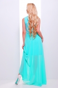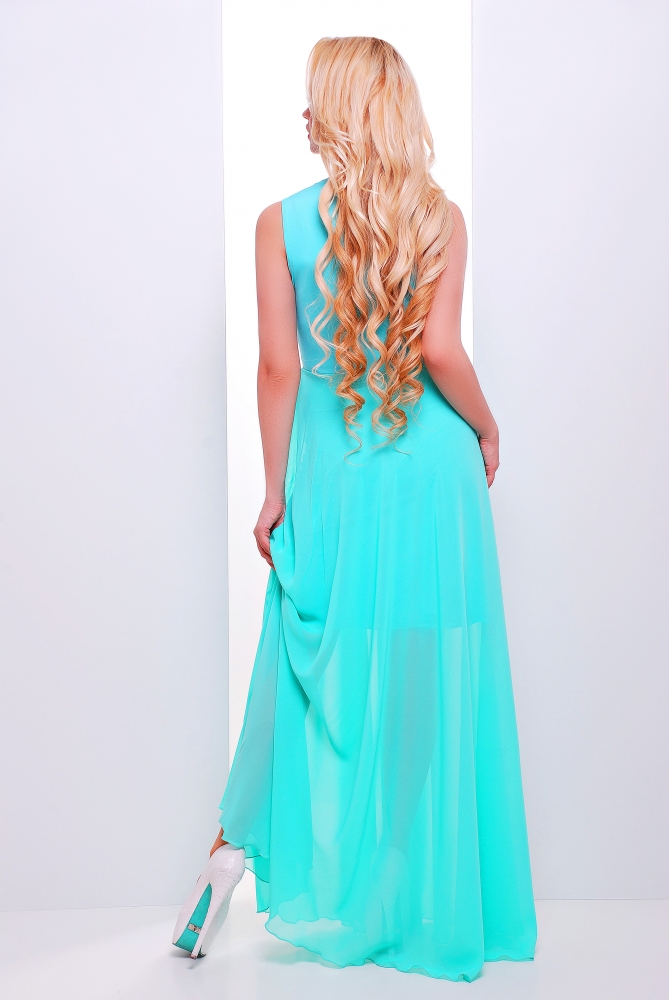 Сарафан молодежный ,мягкий струящийся силуэт свободный объем и драпировка по юбке полочки позволяет создать повседневный,а также вечерний образ.Драпированный лиф платья и спинку соединяет шифоновая завязка в виде банта.А изящность талии подчеркивает широкий фигурный пояс с перетяжкой цвета золота украшенной камнями.